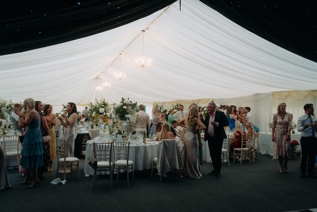 The celebration then continues as the newly-weds and their guests follow the pretty candle lit pathway over the Ha Ha by way of the fairy-lit bridge to enter the luxurious marquee for the wedding breakfast and evening celebration including dancing under the starry sky.