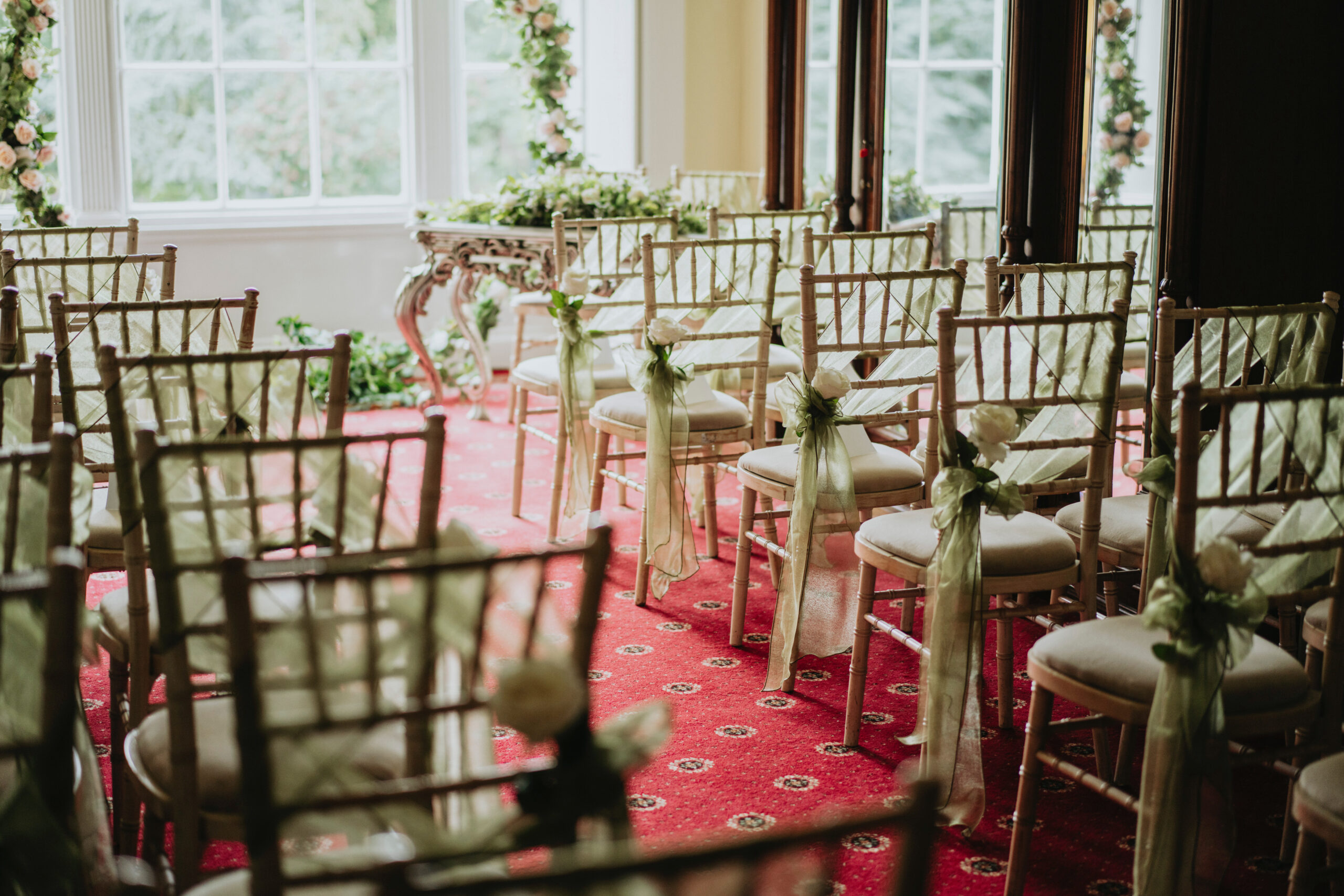 Our beautiful ceremony room suitable for up to 80 people, with its nude palette making it ideal for any of your own customised colours. We have luxurious chivari chairs, and Georgian sash-windows from floor to ceiling. A classic and elegant room to be wed in.
