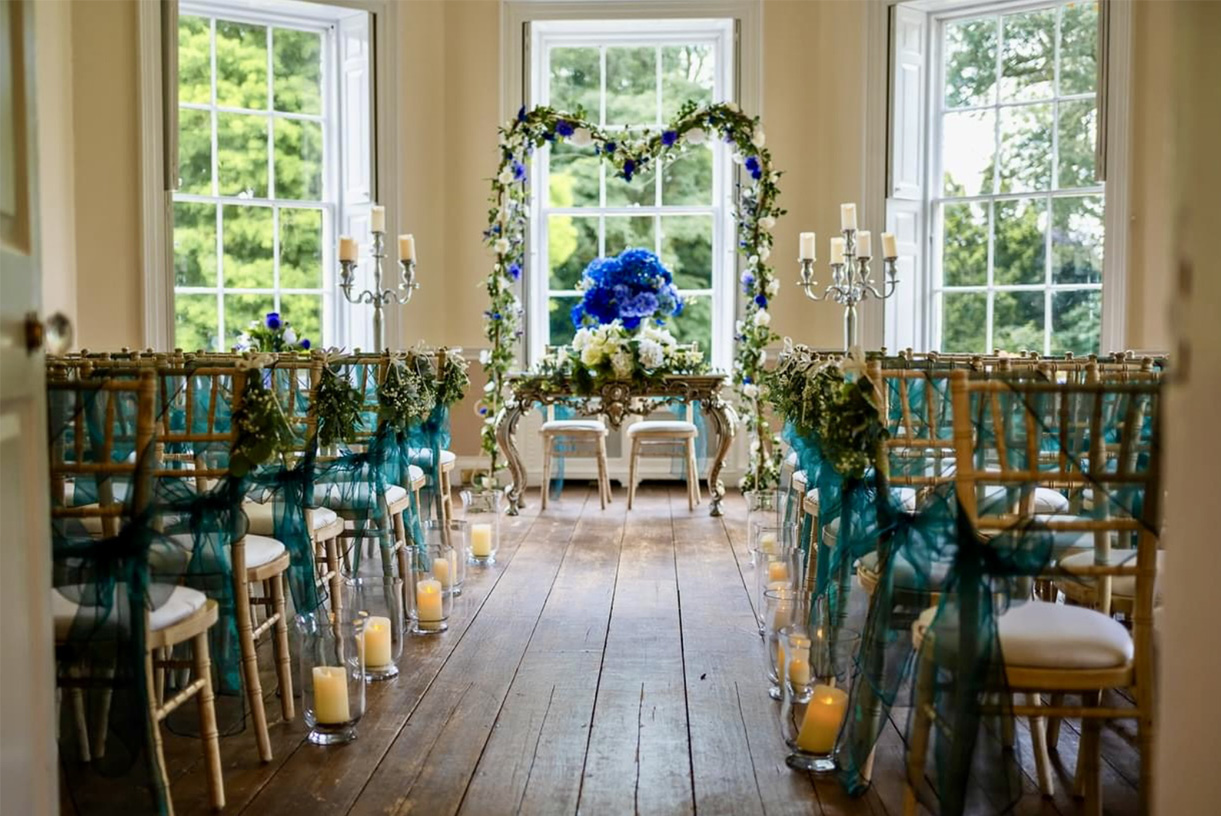 A truly spectacular place to be wed, with the grandeur of the 1726 Georgian stately home as the backdrop. For a true Bridgerton-style wedding this is a fabulous option. Up to 150 guests can be seated in this licensed area for your ceremony.